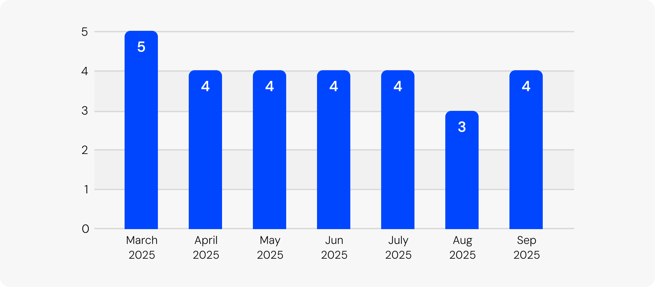 A small dip in August (3 messages) indicates a seasonal slowdown — likely tied to quieter summer shopping periods — before activity picks back up in September (4 messages).