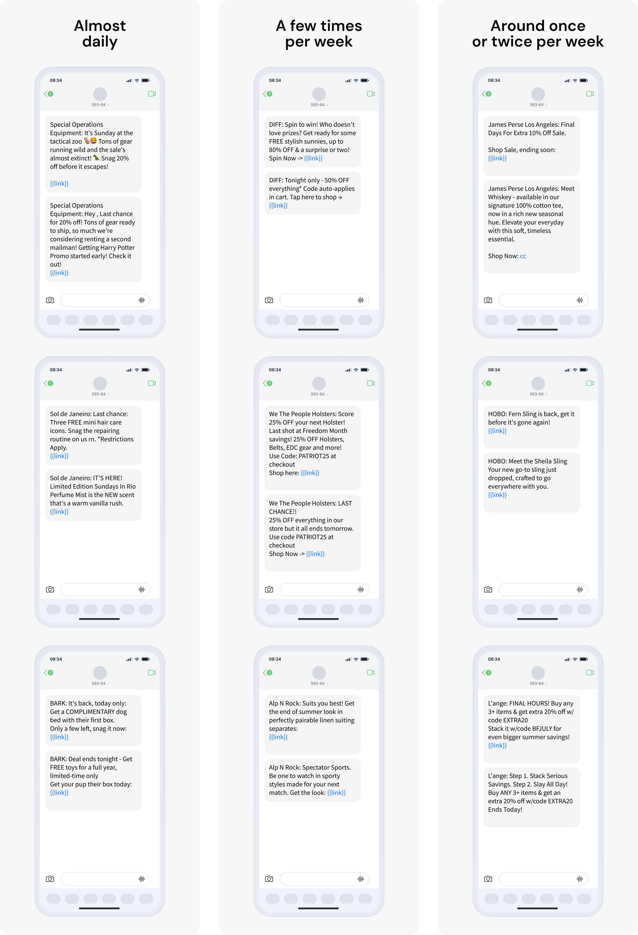 Here’s how brands break down by how often they text per month: